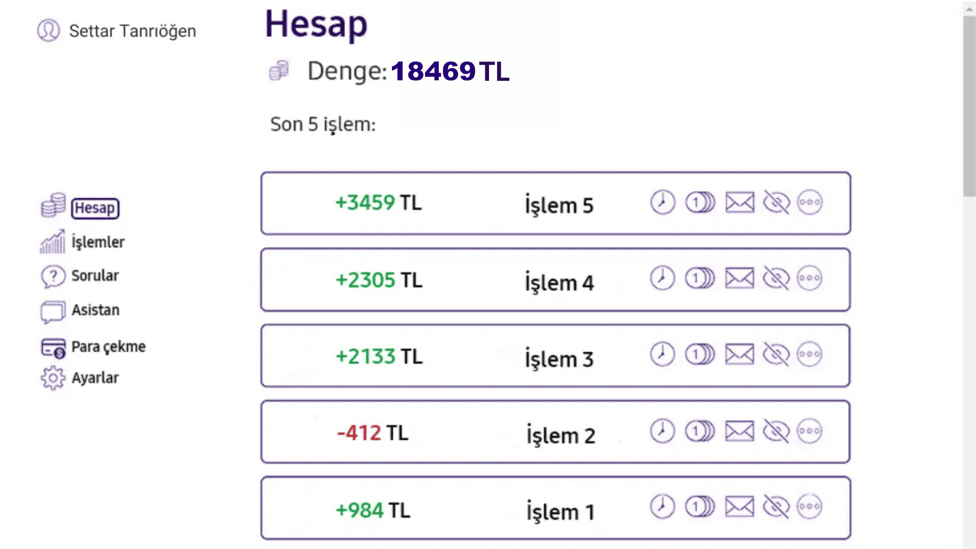 Sabahım, bakiyemi kontrol etmemle başladı, hesabımda şimdiden 16720 TL vardı! Şunu bir hayal edin. Bir gün içinde bakiyem iki katına çıktı. Kârımı zaten çekmek istiyordum, ancak bir hafta daha beklemeye karar verdim.